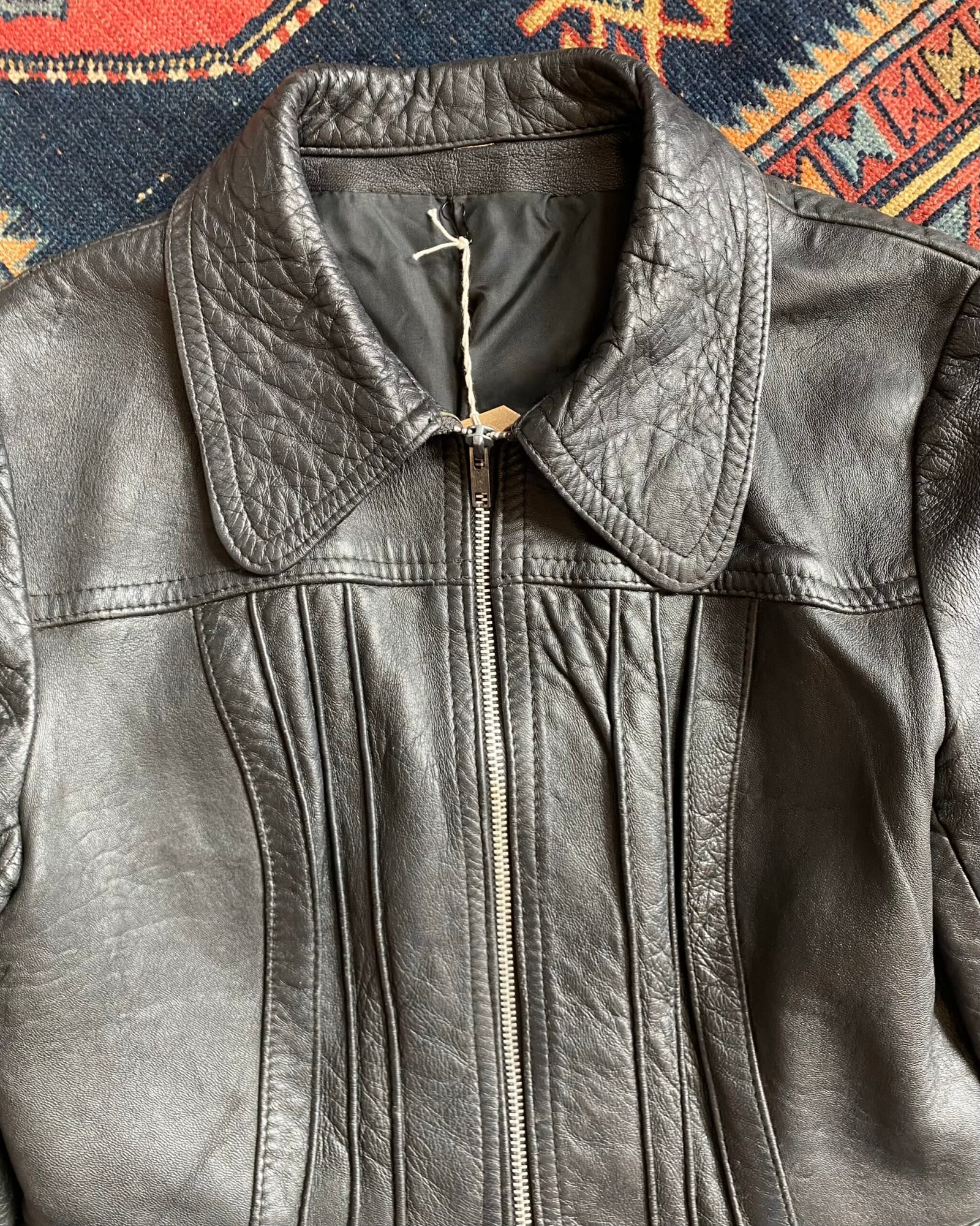 1970s Pin-tuck Detail Zip Front Vintage Leather Jacket. Small.