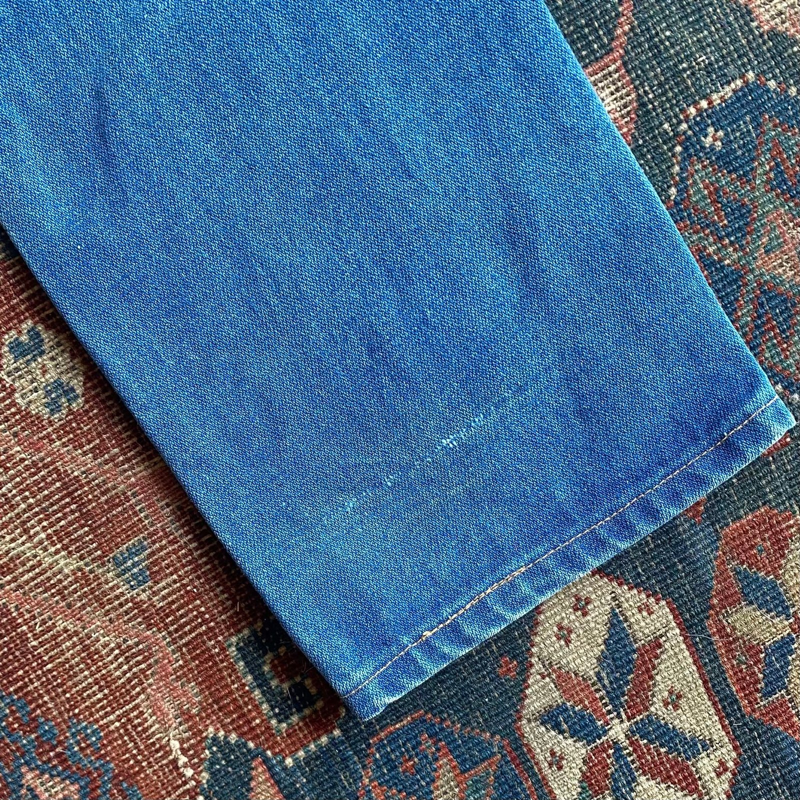 Iconic mid blue 70s wash denim, high rise and slim straight leg fit vintage jeans. Contrast copper stitching and leather logo patch to the back pocket. Zip fly fastening with classic denim waistband button. Made in USA. In great vintage condition, it does looks like they have been worn shorter by a previous owner, so have very slight marks to the bottom hems (see pics). Otherwise really great. Sized as a UK 6 with a 25” waist. Please check full measurements below before purchasing.