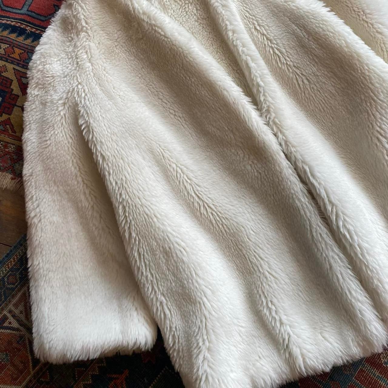 Soft vintage faux fur in off white with long sleeves and shawl collar. Heavy duty hinge fastening to the front. Size XL/UK 16.