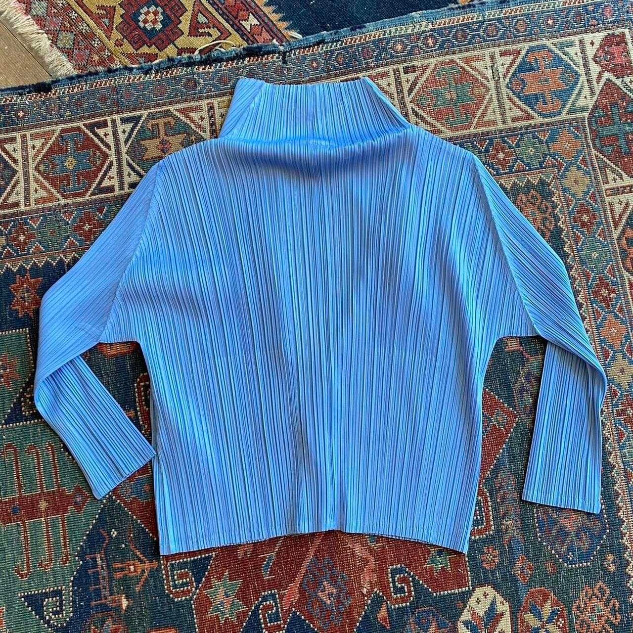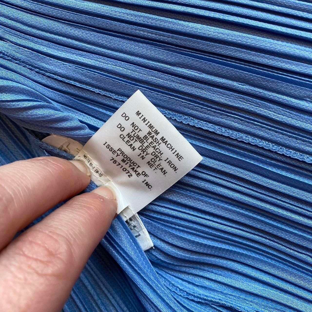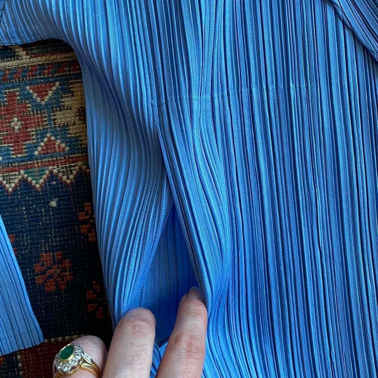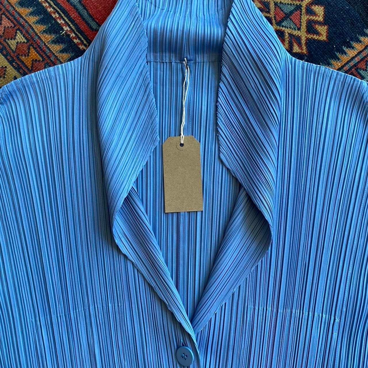 1990s Vintage Issey Miyake Pleats Please single button blazer. Made in Japan. Amazing pale blue plissé polyester fabric. Single front button fastening and concealed side pockets. In beautiful condition. Original Pleats Please size 4, best fits a modern 8-10. Please see below measurements before purchasing. Plissé fabric has lots of stretch.
