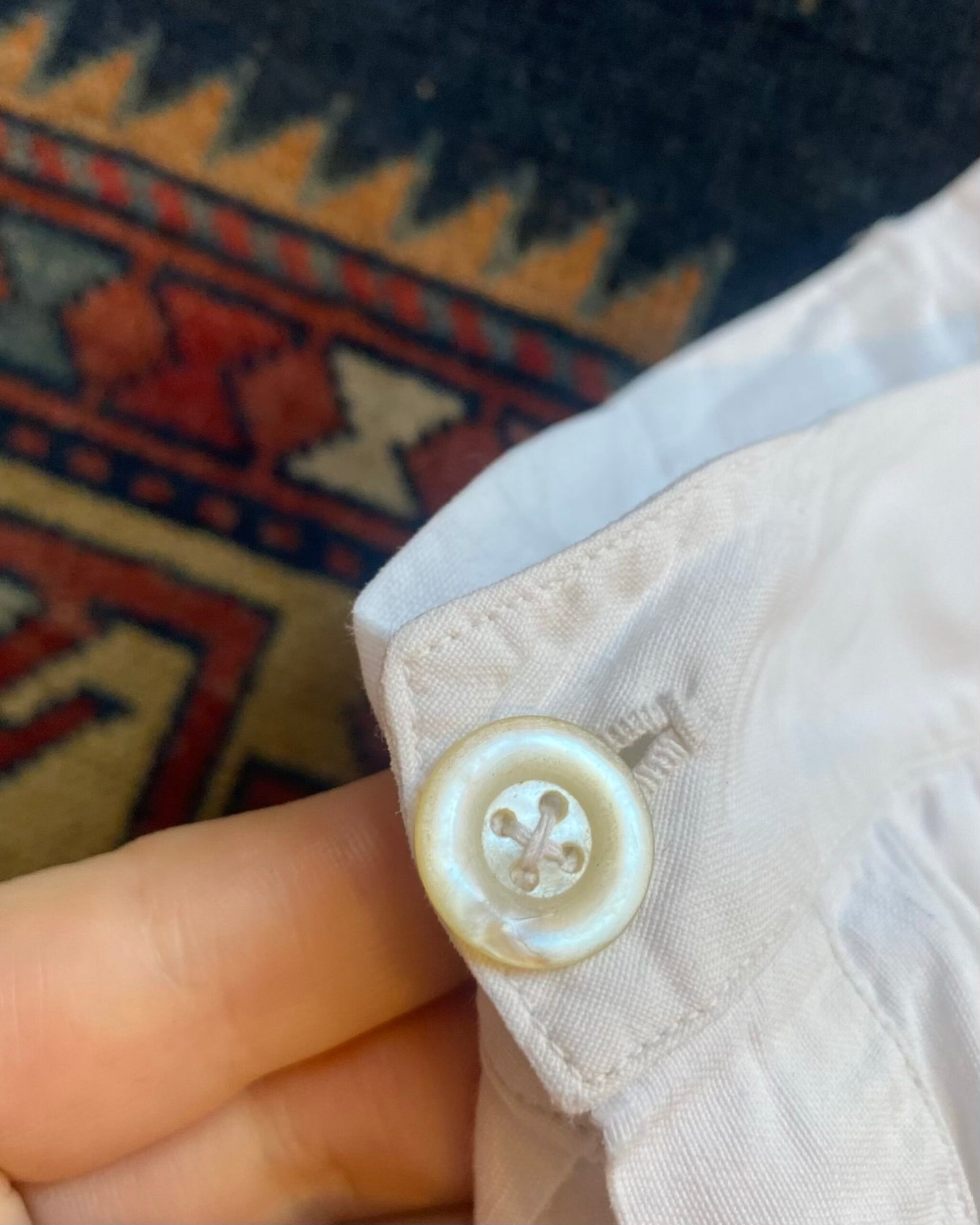 Lovely French Broderie Anglaise trim antique bloomers. Estimated 1830s to 1900s, these were originally a pair of “Split drawers” or “Open-crotch Drawers” that have had the gusset stitched closed for modern wearability. Beautiful antique cotton with hand stitched broderie anglaise hems to the legs. Pretty dipped waistband to the front with open side seams and gorgeous antique mother of pearl buttons. Lovely wide leg style on these ones with lots of room to move. Perfect for Summer. Gathered detail to the waistline, and a cinch pull to the back if size needed adjusting. In beautiful condition for their great age, with some areas of wear to the back and a visible mend (see pics). Still plenty of wear and SO pretty! Sized as a UK 6 to 8 with a 26” waist meant to be worn high on the true waist. Please check below measurements before purchasing.