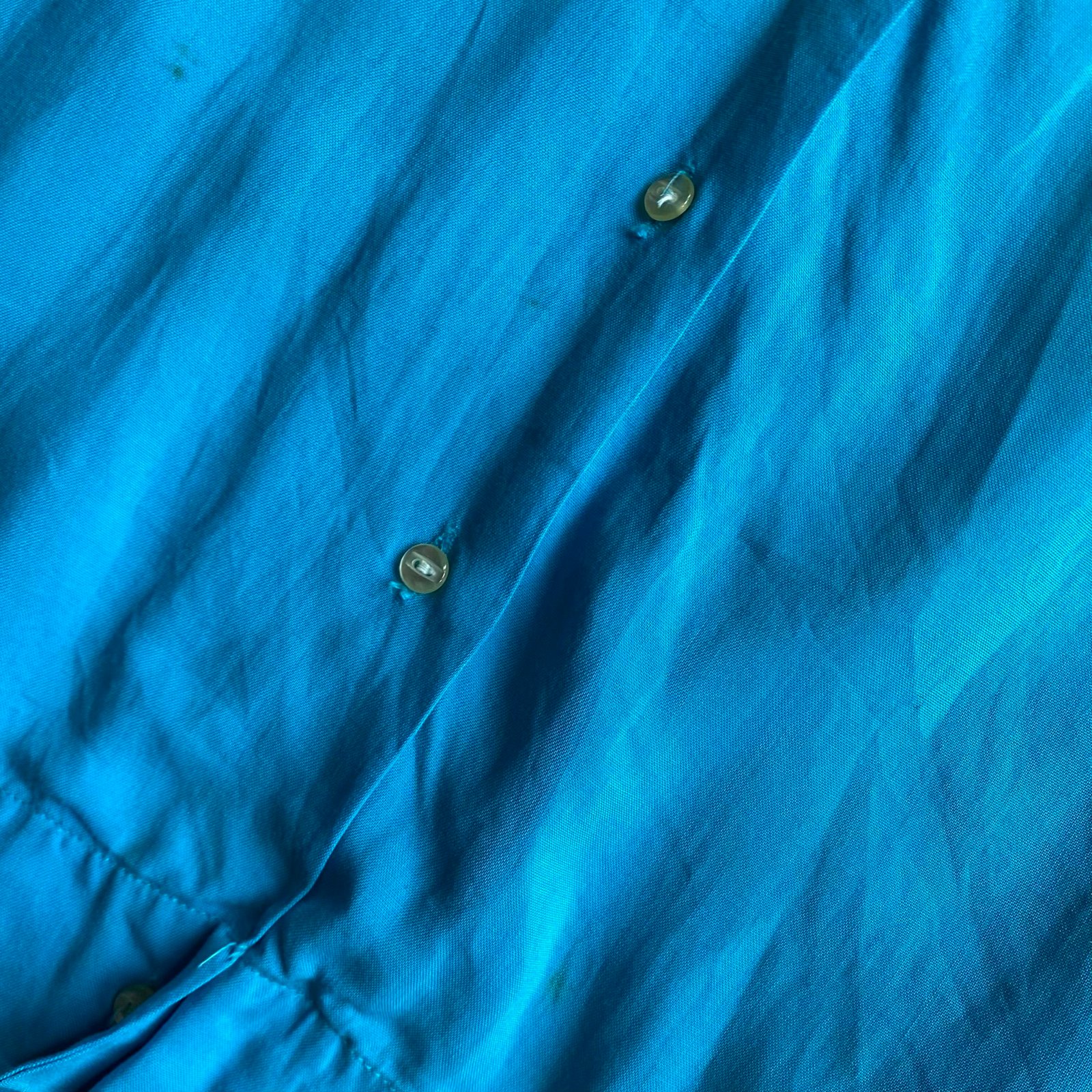 A shop fave! Original 1960s Crown Prince bowling shirt with amazing patches and chain stitching to the back. Contrast collar and piping to the sleeves. Plain button front and cinch buttons to the back hem. This is a youth size, but will fit a modern ladies size 8/XS, sized small due to armhole size. In nice condition for its age with some small markings to the bottom front (see pics). In otherwise good condition. Please see below measurements before purchasing.