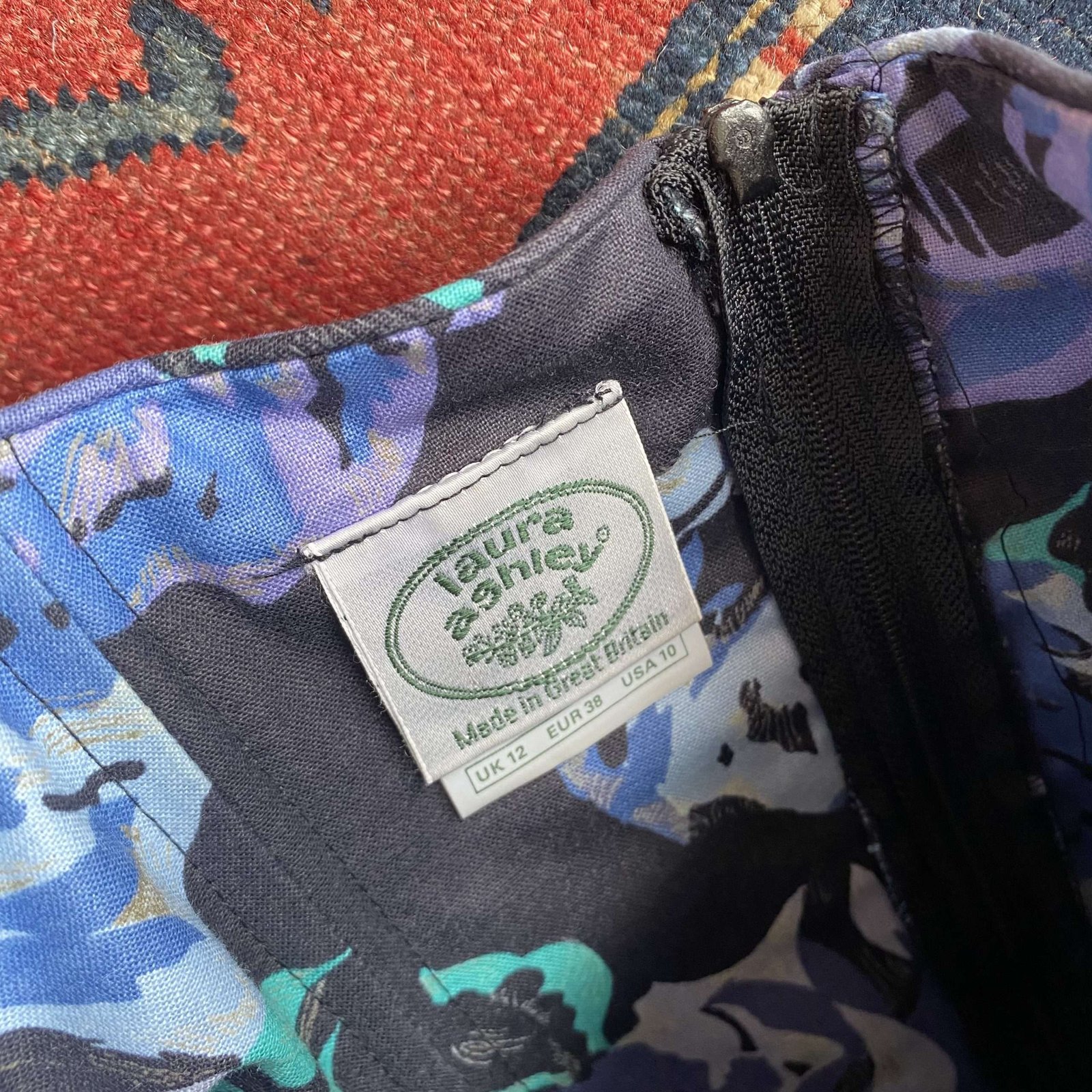 Stunning vintage Laura Ashley 100% cotton floral fabric in a strapless regency style tiered style. Super full skirt with tiered side ruffles. Sweetheart neckline to the fitted corset bodice. Centre zip back fastening and boning to the bodice to add structure. Unlined. Has had a stitch repair to a tear in the very bottom side of the hem (see pics) but in otherwise lovely vintage condition. Perfect for a summer event! Original label states a size 12, however it measures as a modern UK 10. Please check below measurements before purchasing.