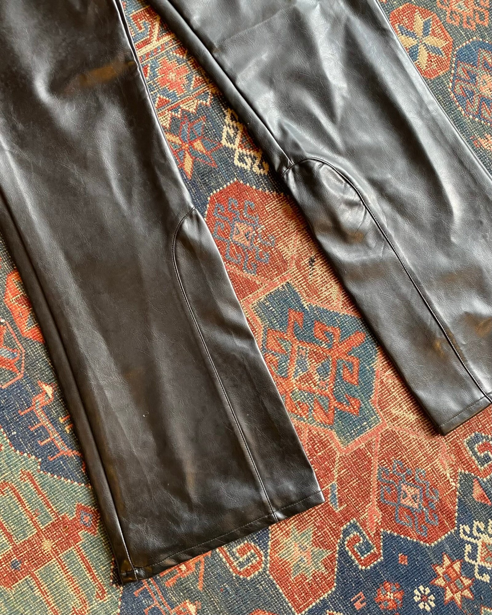 Y2K Deadstock Firetrap Low Waist PVC Bootcut Vintage Trousers. UK 12.