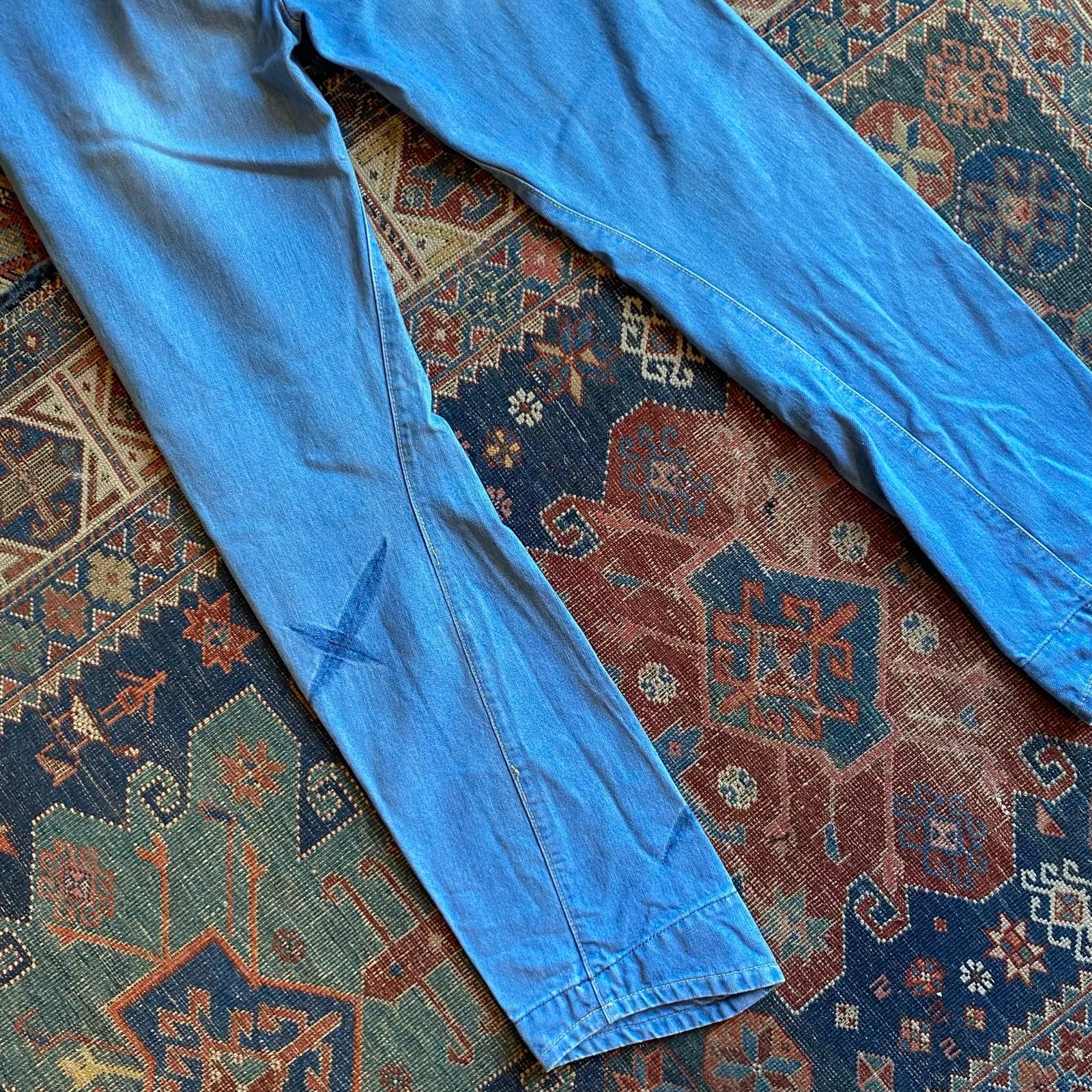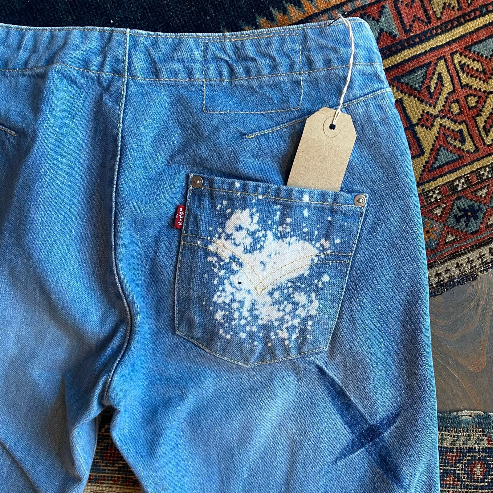 We love these! Vintage Levi’s engineered ‘Twisted’ seam jeans from the early 2000’s. Cool bleached and tie dye details dotted throughout. Low waisted with a zip fly and waistband button. Single red tab back pocket. Twisted seam, straight leg fit with iconic curved hem to the legs. 100% cotton denim, zero stretch. These are a deceptive fit, and come up smaller to fit compared to the measurements. I would suggest best fits an 8, after having them on a window mannequin, although measurements seem larger. Please check full detailed measurements below against a similar item you already own before purchasing.